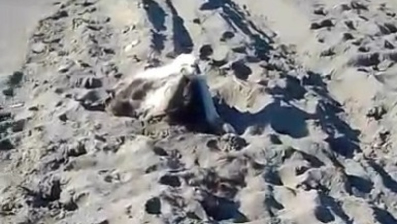 Житель сообщил, что пошел гулять с собакой вдоль побережья и в песке обнаружил частично разложившийся труп животного.