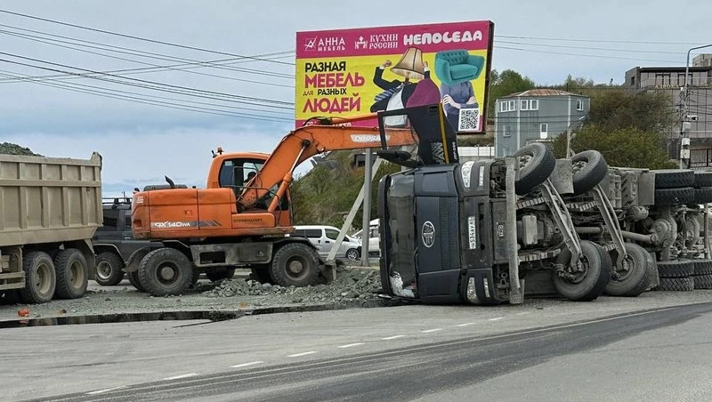 По данным очевидцев, прибывший на место экскаватор перегружает щебень с длинномера в самосвал.