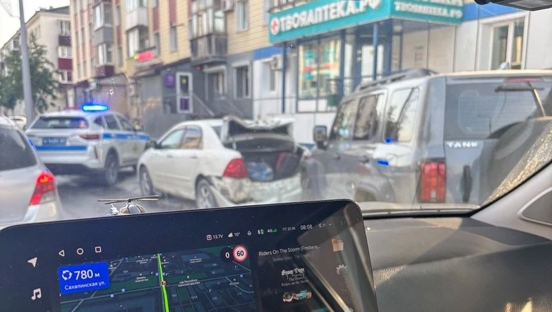 Первая авария произошла в районе строящегося кампуса «СахалинTech». Там, по словам очевидца, китайский внедорожник Tank 300 «догнал» седан Toyota Corolla. Судя по фотографиям, у легковушки оказался прилично помят багажник. На место происшествия оперативно прибыл экипаж ДПС для оформления ДТП.