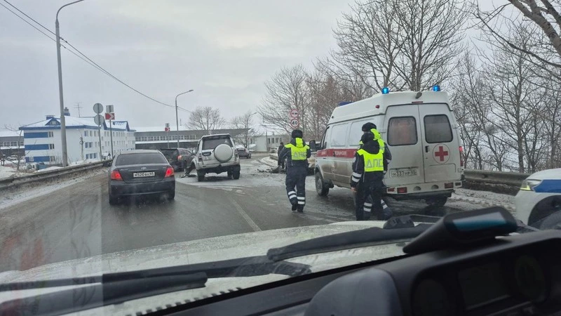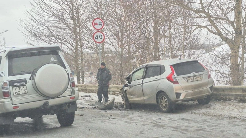 На Транзитной улице в Южно-Сахалинске произошло дорожно-транспортное происшествие: столкнулись автомобили «Тойота Ленд Крузер Прадо» и «Хонда Фит». Инцидент произошел неподалеку от моста через реку Сусую.