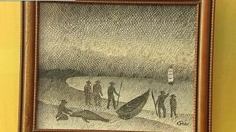 Выставка необычных картин открылась в Поронайском краеведческом музее. Автор представленных работ - известный в районе художник Сергей Минато. На протяжении многих лет он занимался живописью, но широкую известность приобрел благодаря оригинальному хобби. Год назад он освоил уникальную нивхскую технику создания картин из рыбьей кожи.