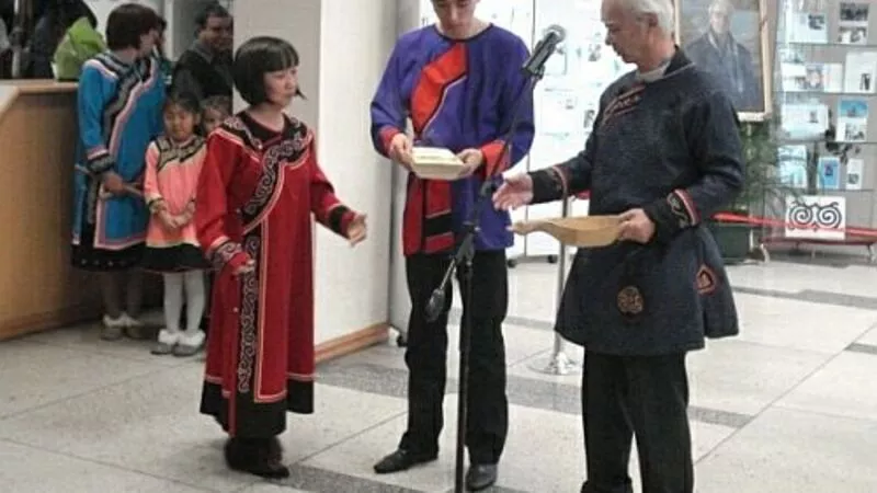 В. Санги как вождь племени, в соответствии с национальными обычаями, осветил место проведения выставки. Красную ленточку перерезали сам писатель, заместитель председателя правительства Сахалинской области Ирина Трутнева и руководитель агентства по культуре Сахалинской области Ирина Гонюкова.