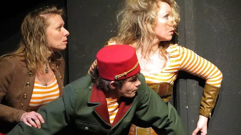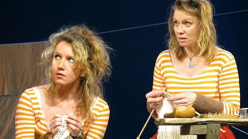 Движущей силой спектакля стали женщины – их сплетни, склоки, перебранки, плавно переходящие в потасовки, закручивают сюжет и ведут к победному финалу. Они представляют два семейства - падрона Тони (Виктор Черноскутов) и его «коллеги» Фортунато (Андрей Кузин). Пока мужчины промышляют в море, замужние плетут кружева в прямом смысле слова, а девушки одновременно и сердечные - в поисках женихов.