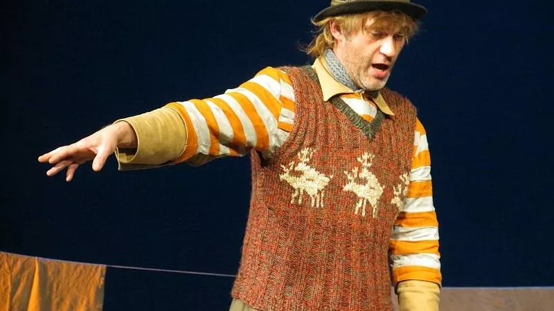 При великолепных работах всех занятых в спектакле актеров центром постановки все-таки стал ведущий актер Чехов-центра Андрей Кузин, по праву и с достоинством несущий роль премьера театра. Его Фортунато повезло по определению. Пьесу Гольдони писал на местном кьоджинском наречии, подробно объяснив в предисловии к пьесе его особенности. А Фортунато вдобавок к этому еще не выговаривает некоторые буквы и проглатывает целые слова. В сахалинском варианте герой разговаривает на …украинском языке, что максимально усиливает комизм и образа, и ситуации. Монологи Кузина стали просто отдельными номерами в спектакле, вызывая дружный хохот зала. Можно только порадоваться за актера, мастерство которого растет в геометрической профессии.
