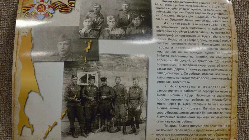Семья Васильевых из Холмска рассказала о своем дедушке и прадедушке Степане Беляеве. Уникальность его судьбы в ее типичности. Он прошел с боями всю войну, дошел до Берлина, а завершил эпопею на Дальнем Востоке – в боях с японскими милитаристами. Для шестилетнего Романа Васильева жизнь его прадеда – уже далекая история страны.