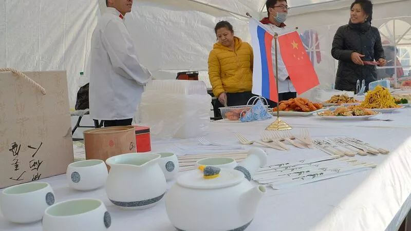 Площадь тем временем окутали ароматные запахи: заработали продуктовые палатки, в которых раздавали блюда всех представленных на острове национальностей. Бурятские мясные позы с вкусным бульоном внутри, харбинский салат, азербайджанская пахлава и щербет, узбекский плов – выбрать было из чего. Русское кулинарное направление подкрепили тяжелой артиллерией: военная полевая кухня раздавала гречневую кашу с мясом и горячий чай.