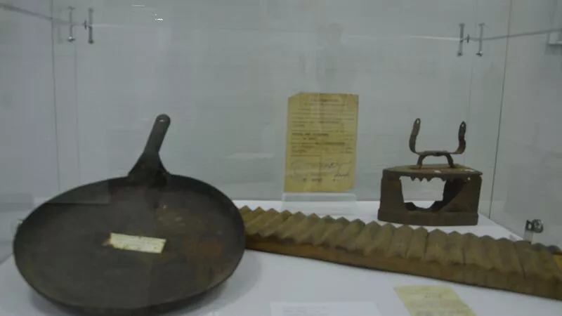 Директор музея Валентина Суковатицына с особой гордостью демонстрирует самый старый экспонат – сковороду из днища железной бочки. Она практически ровесница района – ее смастерил глава семейства Пьянковых, когда ветеран Великой Отечественной войны с супругой и девятью детьми приехал на Кунашир в 1946 году.