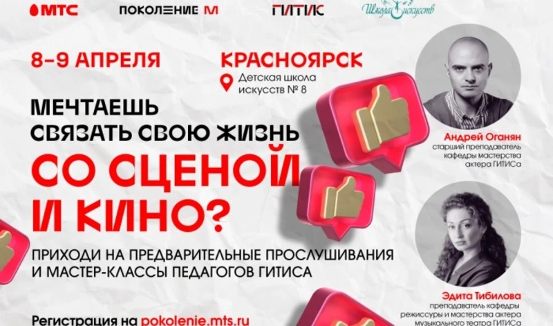 Прослушивания пройдут 8 и 9 апреля в очном формате в Красноярске. Самые достойные кандидаты, прошедшие испытание, могут быть рекомендованы для поступления в ГИТИС.