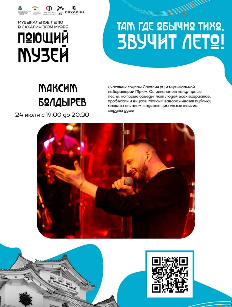 24 июля перед островитянами и гостями региона выступят участник группы Сахалин.ру и музыкальной лаборатории Трюм Максим Болдырев, Анна Жилина с авторскими песнями, а также поэт Жанна Тен.