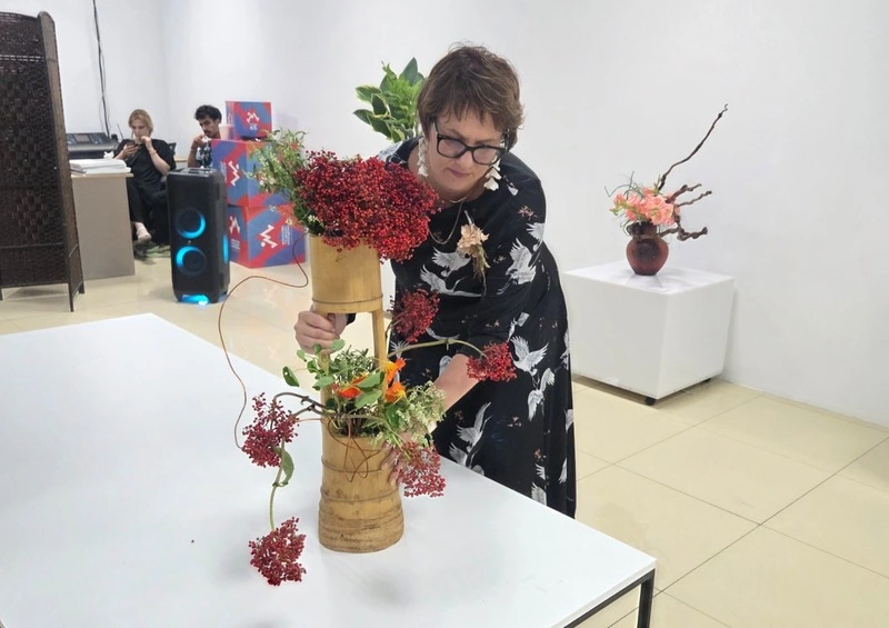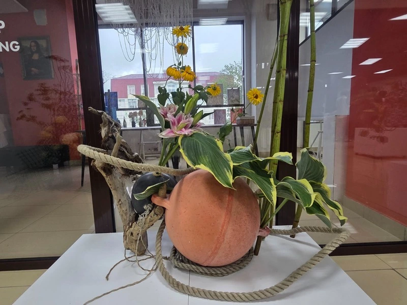 Кроме того, в день открытия выставки «Краски лета» флористы арт-студии SOKO провели для зрителей показательные мастер-классы по созданию икебаны. На шоу они собирали композиции прямо на глазах островитян.