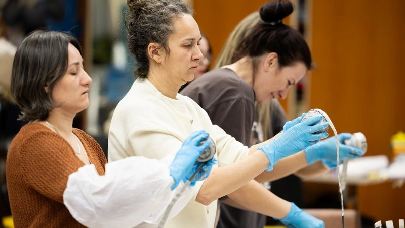 Тем временем в художественно-декорационном цехе основного здания проходил мастер-класс с художником-бутафором Анной Лунеговой. Под ее руководством гости театра освоили технику папье-маше, изготовив корзинки.