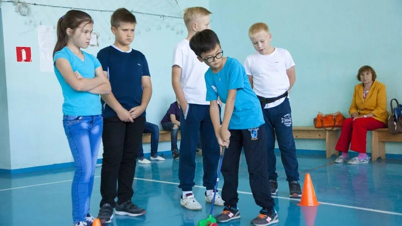 В спортивном зале политехнического колледжа СахГУ состоялись очередные соревнования по гольфу среди учащихся школ островного региона.