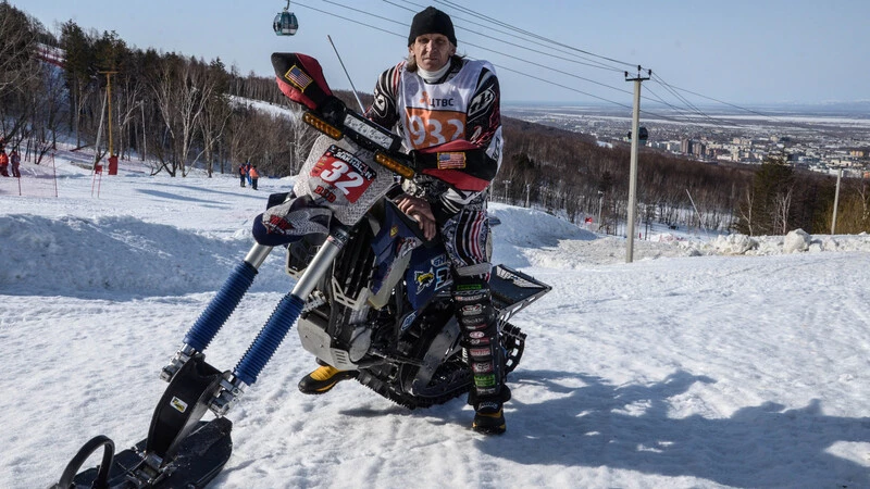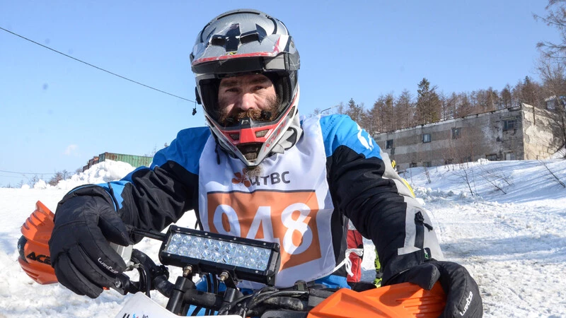 Владимир Балабуха сам из Владивостока, работает на Сахалине вахтовым методом. На сноубайк сел на острове. По его словам, в его родном городе снега маловато для этого вида спорта. А Сахалин просто рай для любителей горнолыжного спорта, как и сноубайка.