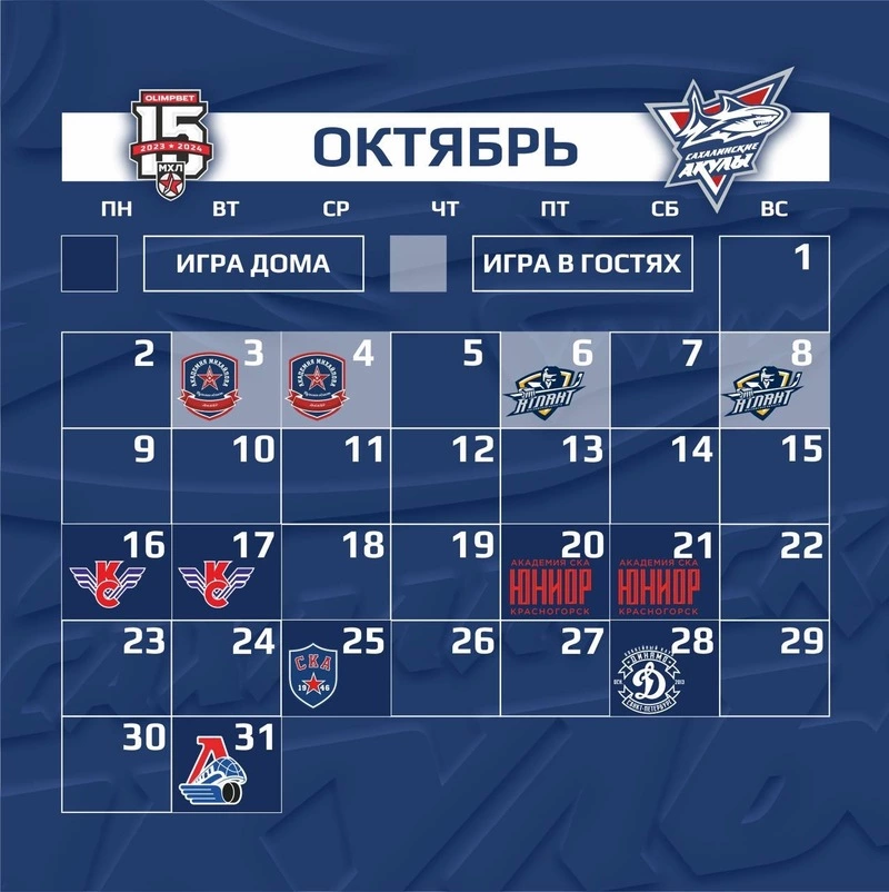 «Начинаем на выезде, а потом проведем 7 домашних матчей + Гала-Матч со Сборной Сахалинской области, который пройдет 14 октября на „Арене Сити“», — сообщили в официальном Telegram-канале клуба.
