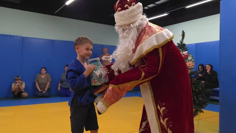 На открытом уроке воспитанники Владислава Дроздова показали приемы, которые оттачивали в течение уходящего года. В зале собрались их родители и заинтересованные жители Итурупа. В рамках мероприятия Дед Мороз поздравил детей с наступающим Новым годом, каждому подарили сладости от партнера.