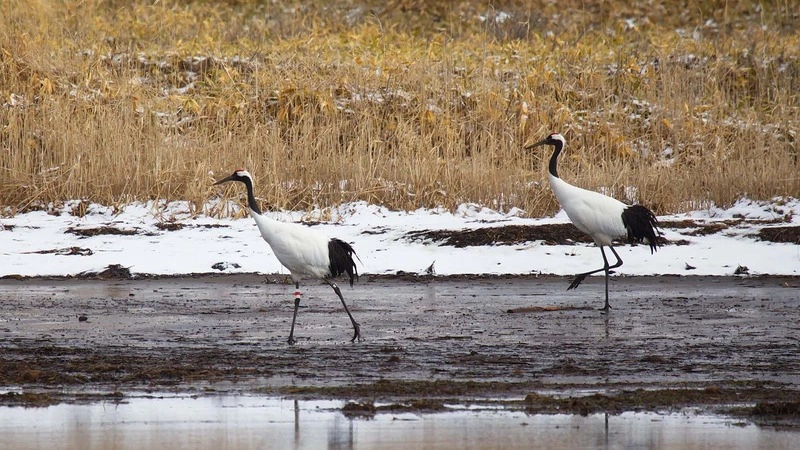 Еще одно интересное наблюдение ученых — самка японского журавля, вернувшаяся с зимовки вместе со своим партнером. За пять лет, что за ней наблюдают сотрудники заповедника, у нее даже кличка появилась — «Белая». Японские ученые в этом году переживали из-за того, что эта пара не появлялась в течение длительного времени на Хоккайдо, где обычно зимовала, на Кунашире ее тоже не видели. К счастью, «Белая» и ее партнер успешно перезимовали и к началу апреля вернулись к месту гнездования на полуостров Весловский.