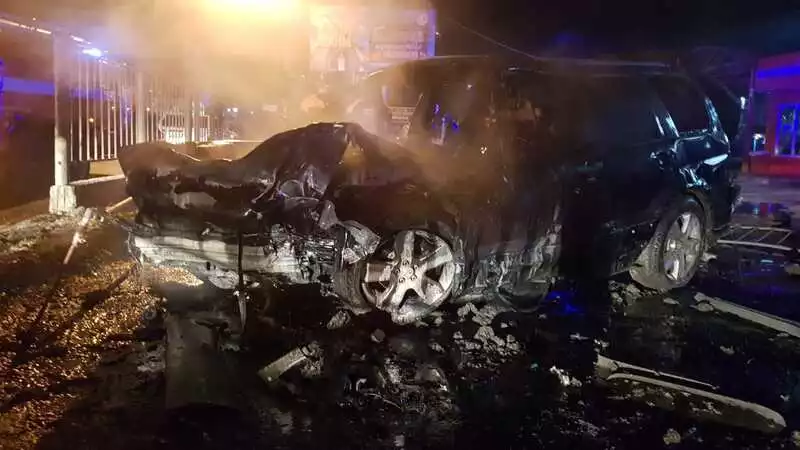 В Южно-Сахалинске на рассвете 11 апреля молодые люди на «Субару Форестер» попали в жесткое ДТП. Иномарка разбилась вдребезги, а после загорелась. На месте работали пожарные и спасатели.