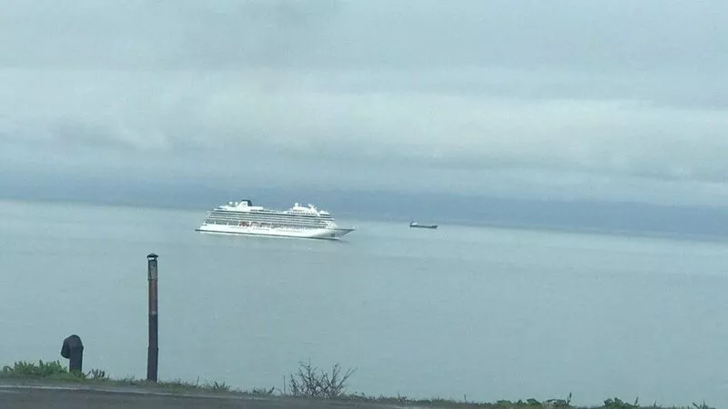 В порт Корсаков 10 мая зашел гигантский круизный лайнер. Девятипалубный Viking Orion прибыл в островной регион из Токио.