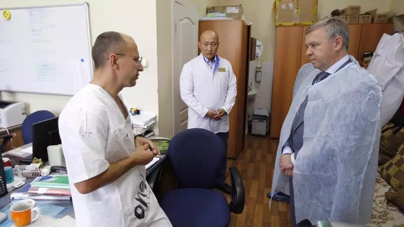 Мэр Южно-Сахалинска Сергей Надсадин навестил в больнице своего сотрудника, который 3 июня пострадал при нападении в мэрии. Молодого человека зовут Дмитрий, и сейчас он чувствует себя намного лучше. Также было принято решение для полной поправки отправить его в санаторий.