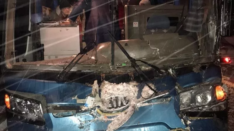 На юге Сахалина ранним утром 3 декабря на трассе Вахрушев — Южно-Сахалинск автобус с пассажирами врезался в дорожную технику и остановился в метре от обрыва, сообщили РИА «Сахалин-Курилы» очевидцы.