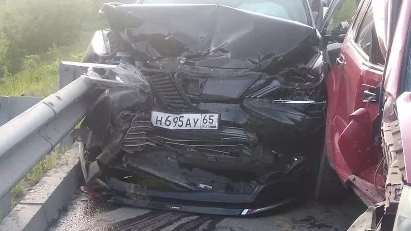 На Сахалине лобовое столкновение кроссоверов в районе Холмского перевала едва не закончилось трагедией. Днем 14 июня водитель красной иномарки пошел на обгон, не убедившись в безопасности маневра. Машины не слетели с обрыва только благодаря дорожному ограждению.
