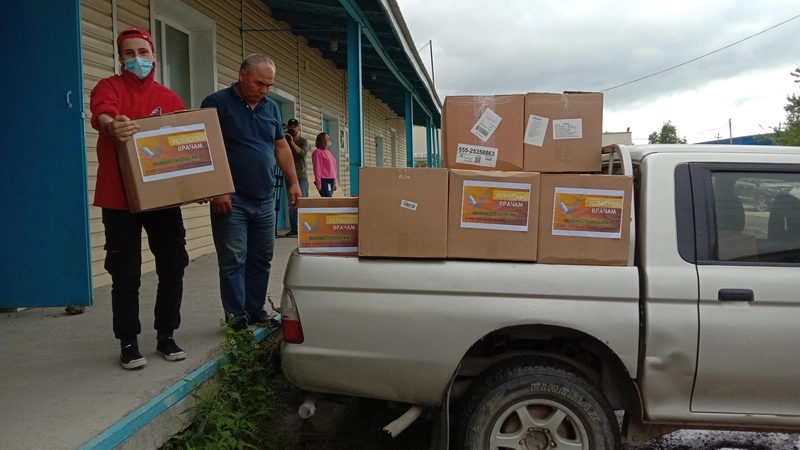 А в начале лета в акции произошли очередные события. При поддержке руководства ОНФ, его региональное отделение решило поддержать тех медиков, которые работали в «красной зоне» — в обсерваторах, врачебных отделениях, где содержались больные, в спецлабораториях и бригадах скорой помощи. Для них начали формировать наборы средств индивидуальной защиты, куда входили специальные костюмы, защитные экраны, маски, перчатки, антисептики и дезинфицирующие средства. Затем более 100 объемистых картонных ящиков с броскими наклейками и отправили в муниципалитеты, включая даже отдаленные и не всегда доступные из-за непогоды Курилы.