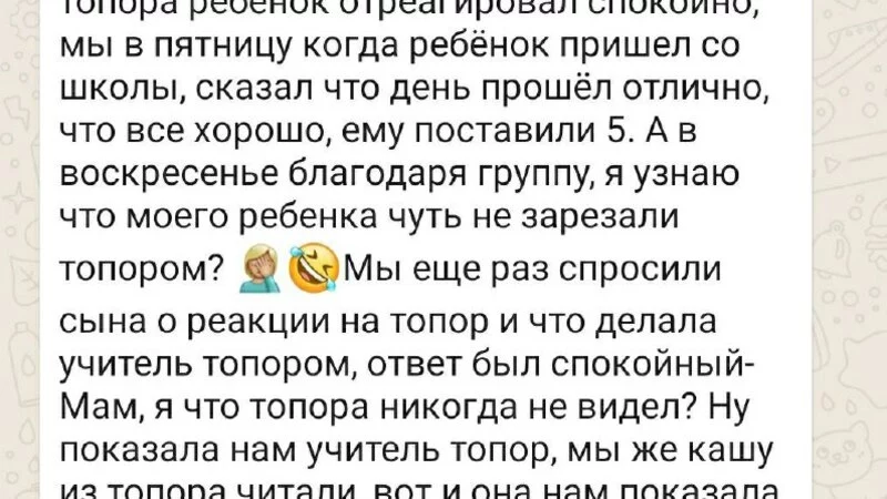 «Наличие топора в качестве наглядного пособия на уроке литературного чтения подтвердилось.