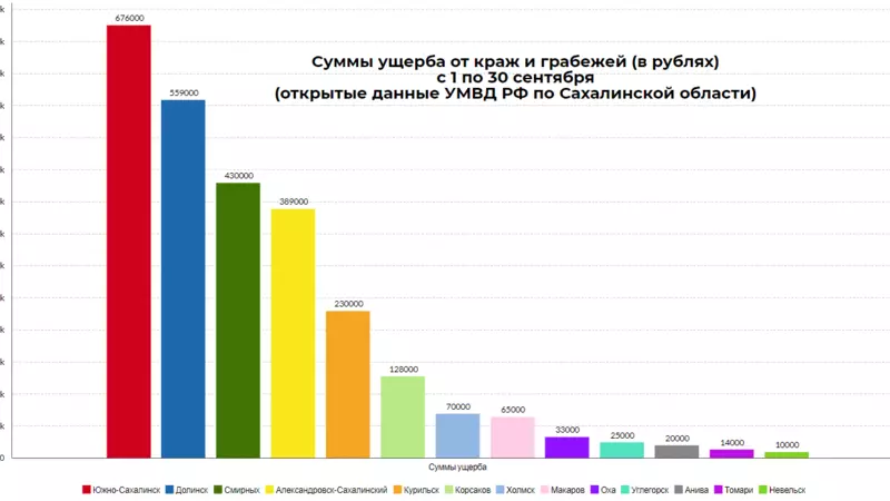С 1 по 30 сентября текущего года воры и грабители поживились в Сахалинской области на 2 миллиона 649 тысяч рублей. Эта сумма в два раза превышает «заработки» злоумышленников по итогам августа. РИА «Сахалин-Курилы» публикует ежемесячную сводку криминальных историй региона на основе открытых данных островного управления МВД.