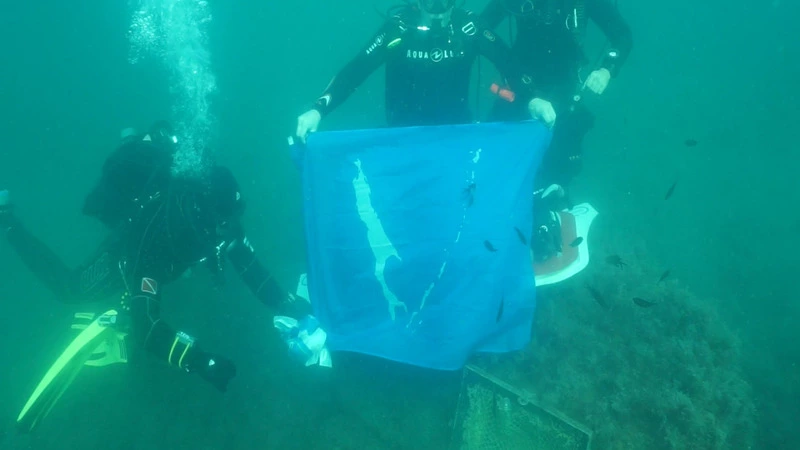 Мы погружались на прошлой неделе, и флаг Сахалинской области у меня был с собой, — рассказал Игорь Скикевич. — Но из-за шторма не успели. Ждали еще несколько дней, пока можно будет выйти в море. Но когда снова собрались погружаться, вода была мутная.