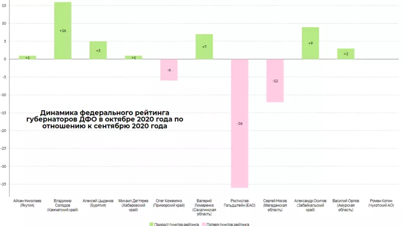 По росту в общероссийском рейтинге губернатор Сахалинской области также занял третье место — за месяц позиции Валерия Лимаренко улучшились на семь пунктов. Сейчас он занимает 60-е место в стране по числу упоминаний в социальных сетях. Пальму первенства по этому показателю забирает камчатский глава Владимир Солодов (+16 пунктов и итоговое седьмое место в РФ), а второе место у руководителя Забайкалья Александра Осипова (+9 пунктов и итоговое 66-е место).