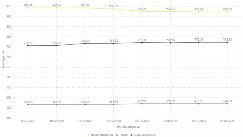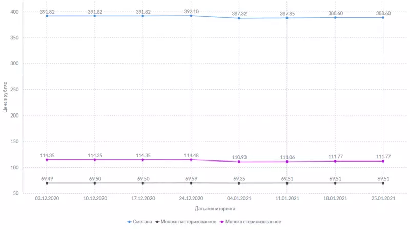Килограмм сметаны покупатели приобретут за 388 рублей и 60 копеек: эта цена не изменилась с прошлой недели. Осталась прежней стоимость творога — 470 рублей и 3 копейки. За кило сыра продавец запросит в среднем 772 рубля и 33 копейки — этот деликатес не дешевел, но и не дорожал в прошедшие семь дней.