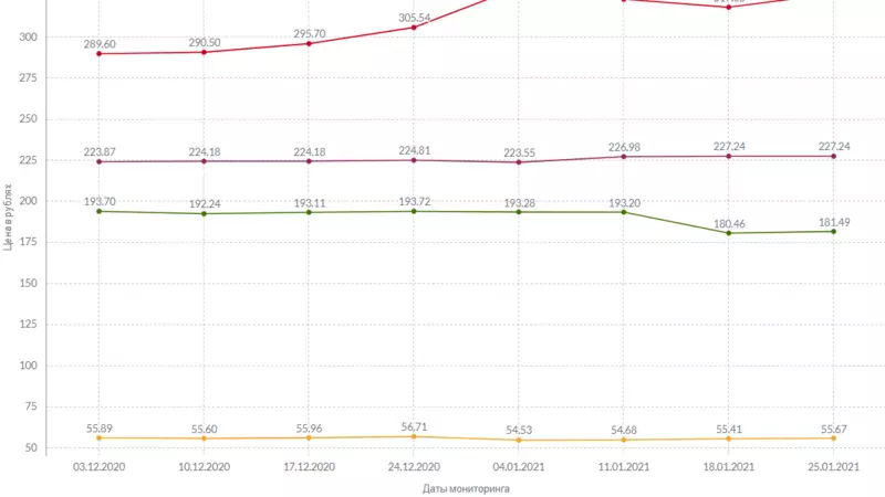 На рынке фруктов и овощей незначительно подорожали практически все позиции, кроме яблок. За килограмм самых популярных плодов, как и на прошлой неделе, запросят 227 рублей и 24 копейки. Свежие томаты выросли в цене на 8 рублей и 26 копеек, а огурцы — на 1 рубль и 3 копейки.