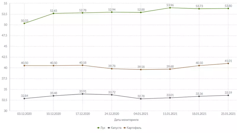Килограмм картофеля подорожал на 51 копейку за минувшие шесть дней. Прибавка к стоимости белокочанной капусты составила 23 копейки за это же время. Цена за килограмм репчатого лука увеличилась на 7 копеек, а за морковь придется заплатить на 26 копеек больше, чем на прошлой неделе.