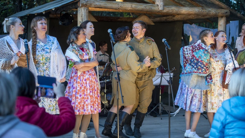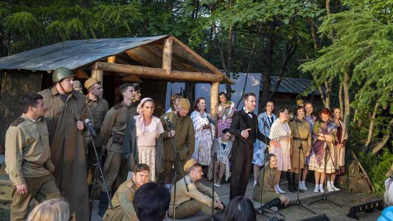 Сахалинский Международный театральный центр им. А. П. Чехова показал премьеру-перформанс «Театр – фронту!», который прошел в парке на аэродроме «Пушистый».