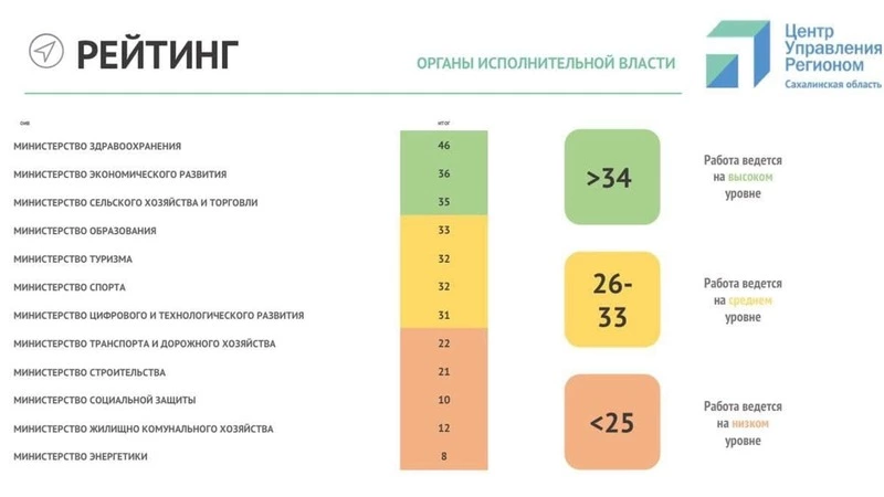 Что касается министерств, то лучше всего справляется с работой Минздрав, Минэкономразвития и Минсельхоз. На среднем уровне работают Минобразования, Минтуризм, Минспорт и Минцифры.