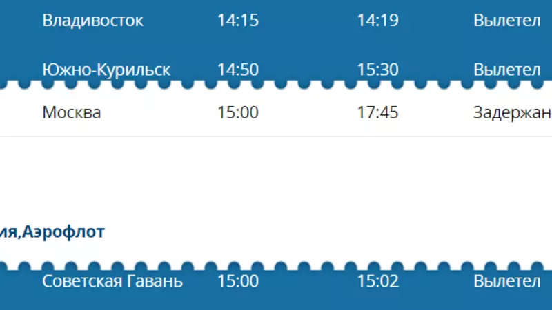 Авиакомпания «Аэрофлот» задержала вылет своего самолета из Южно-Сахалинска на 2,5 часа. По плану воздушное судно должно было взлететь в 15 часов по местному времени. Как пояснили РИА «Сахалин-Курилы» в правительстве Сахалинской области, борт был задержан в связи с небольшой технической неисправностью самолета.