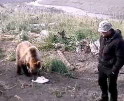 В сети появилось видео, на котором житель Поронайска Геннадий угощает медведя тортиком. Встреча бесстрашных островитян с диким зверем произошла на севере Сахалина, на полуострове Шмидта. Животное нисколько не проявляло агрессии и не боялось людей.