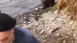 «Привет». Упитанный медведь выгнал с реки рыбаков с удочками