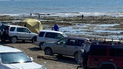 Жители южной части Сахалина выбрались в Корсаковский район за сбором морской капусты и винограда, которые недавно выбросило на берег. Островитяне подгадали время и приехали в отлив.