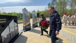 Во вторник, 3 июня, в селе Рощино Смирныховского муниципального округа состоялась торжественная церемония, посвященная открытию сквера «По следам Боевой Славы» в честь героев Южно-Сахалинской наступательной операции. После небольшого митинга губернатор Сахалинской области Валерий Лимаренко и мэр Смирныховского муниципального округа Ирина Карпукова возложили к памятнику корзину с цветами.